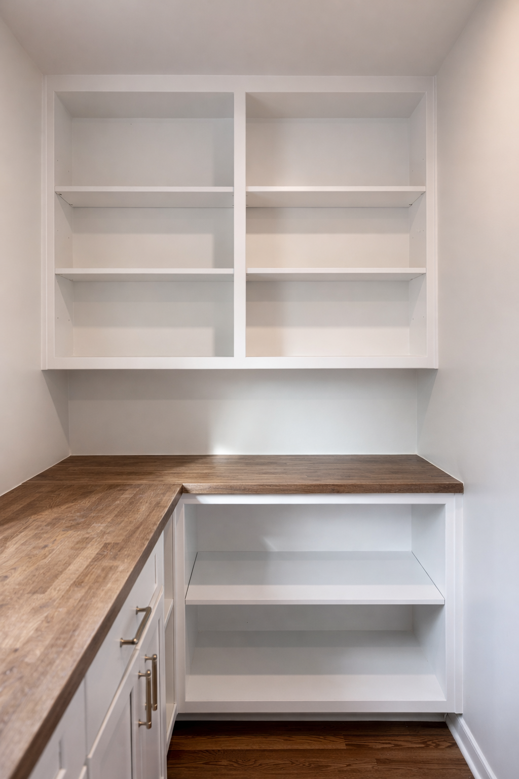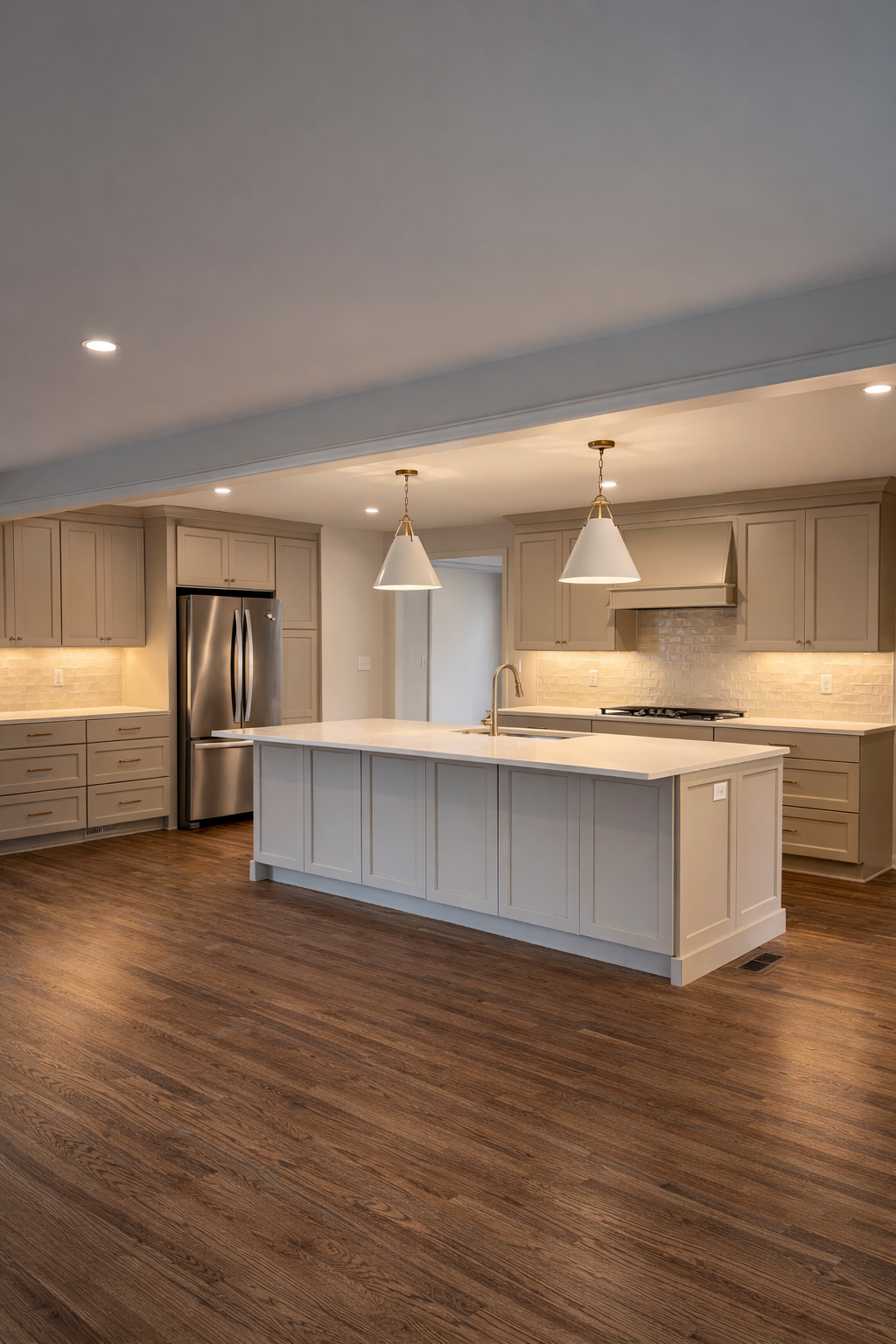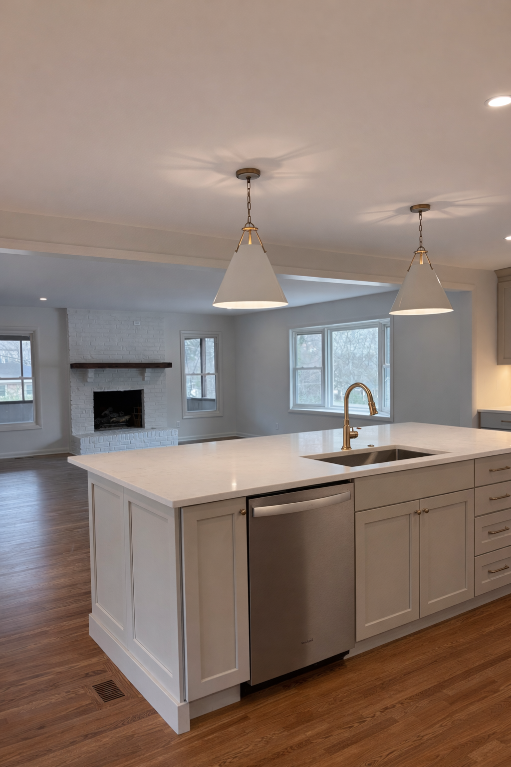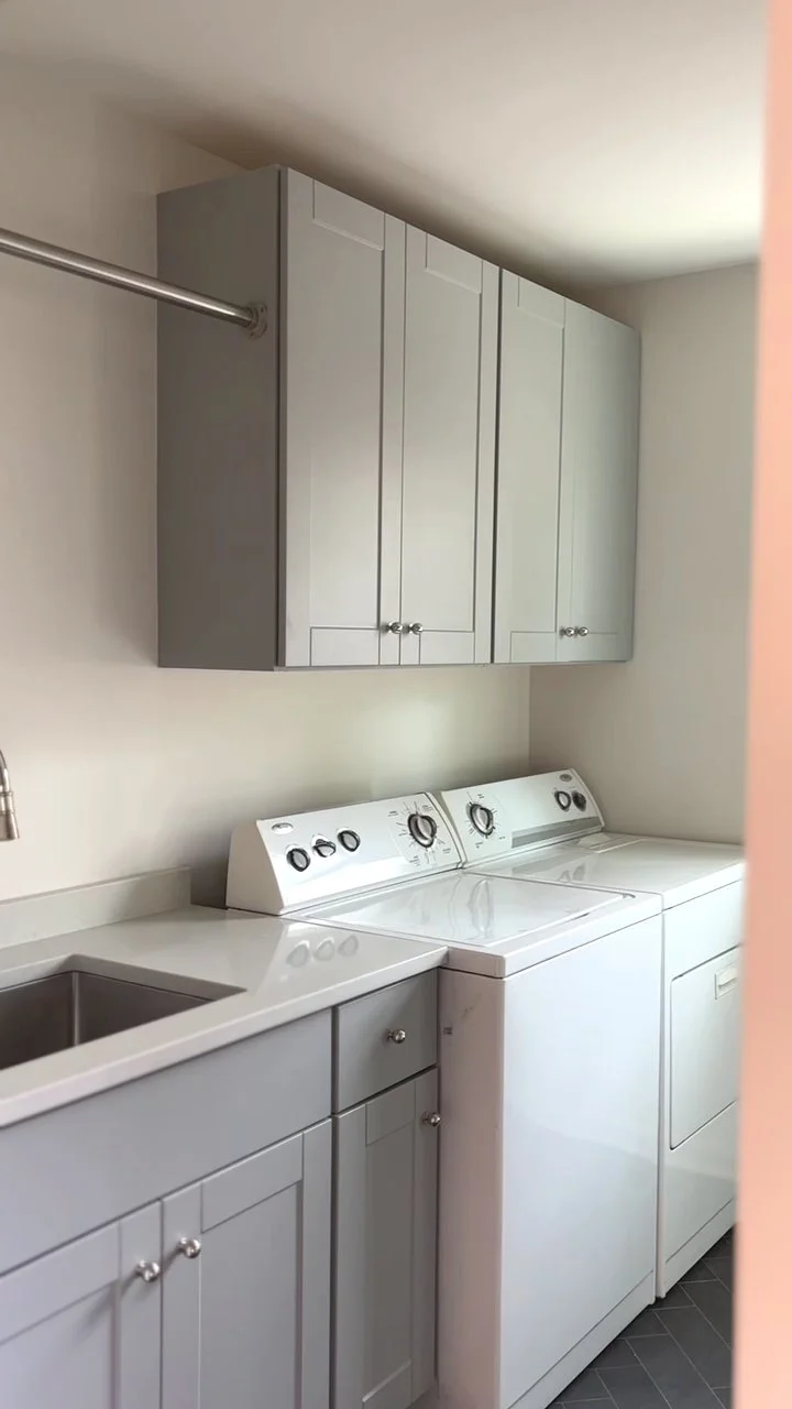 What began as a mold issue in the laundry room quickly evolved into a full laundry, kitchen, and pantry remodel. The kitchen was completely repositioned within the home’s layout, walls were removed, and an open-concept design was created to connect the kitchen seamlessly to the living room. The result is a reimagined main living space, anchored by a more functional kitchen and a thoughtfully designed pantry that supports everyday life.